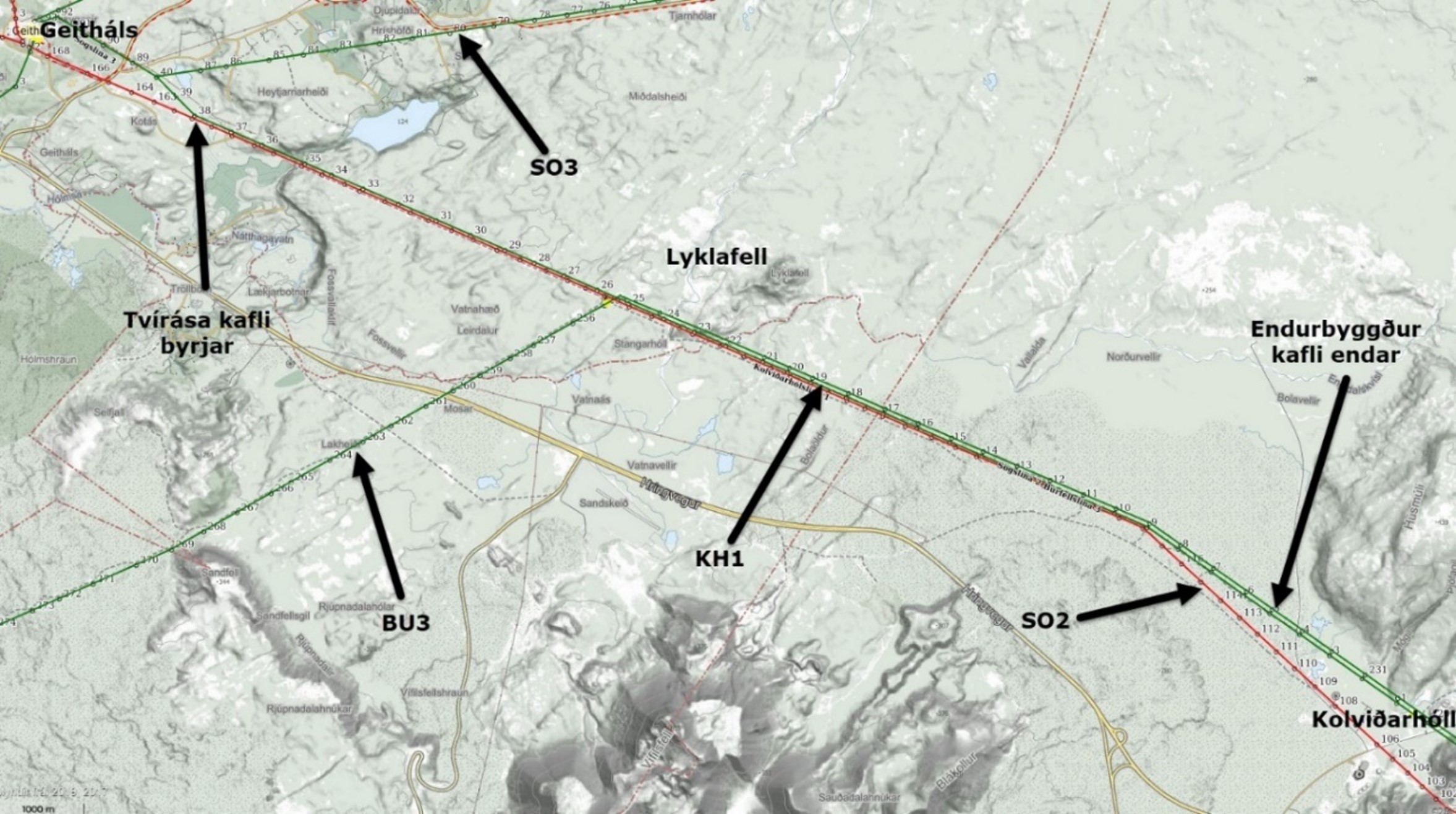 Unnið er að undirbúningi að endurbyggja línuna frá mastri nr. 38 að Geithálsi í línustæði Sogslínu 2.
