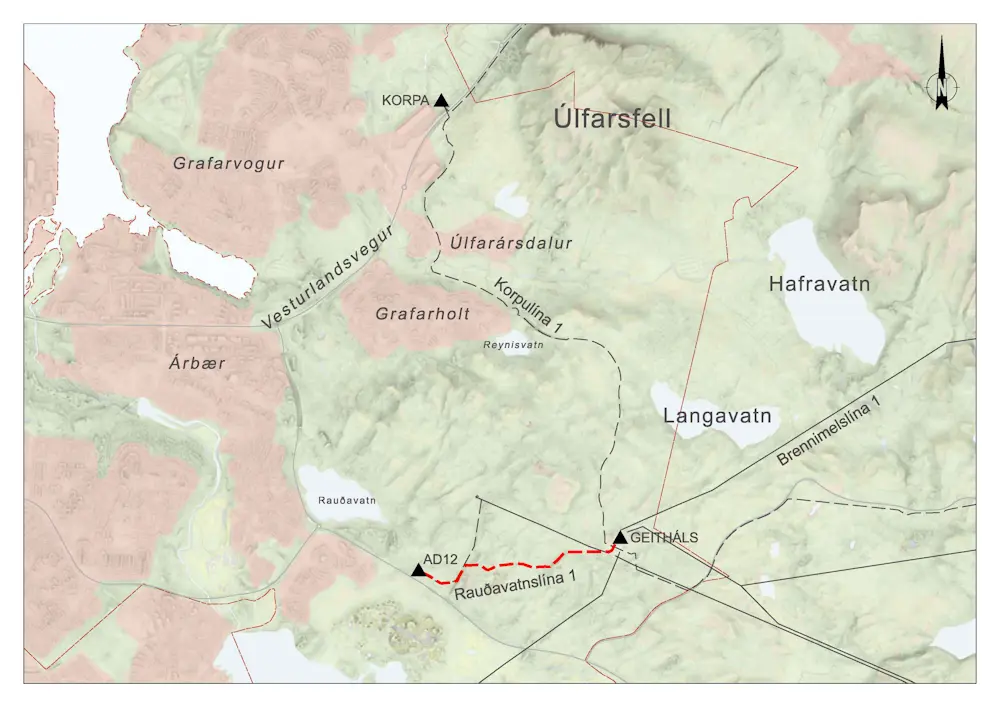 Rauðavatnslína 1 liggur frá tengivirkinu á Geithálsi að tengivirki Veitna, A12 ofan við Rauðavatn. Elsti hluti hennar var tekinn í notkun árið 1953, línan lá upphaflega frá Geithálsi að tengivirki við Elliðaárstöð. Í áranna rás hefur loftlínan verið rifin í áföngum í tengslum við þróun byggðar og var eingöngu leggurinn næst Geithálsi eftir eða tæpir 2 km.