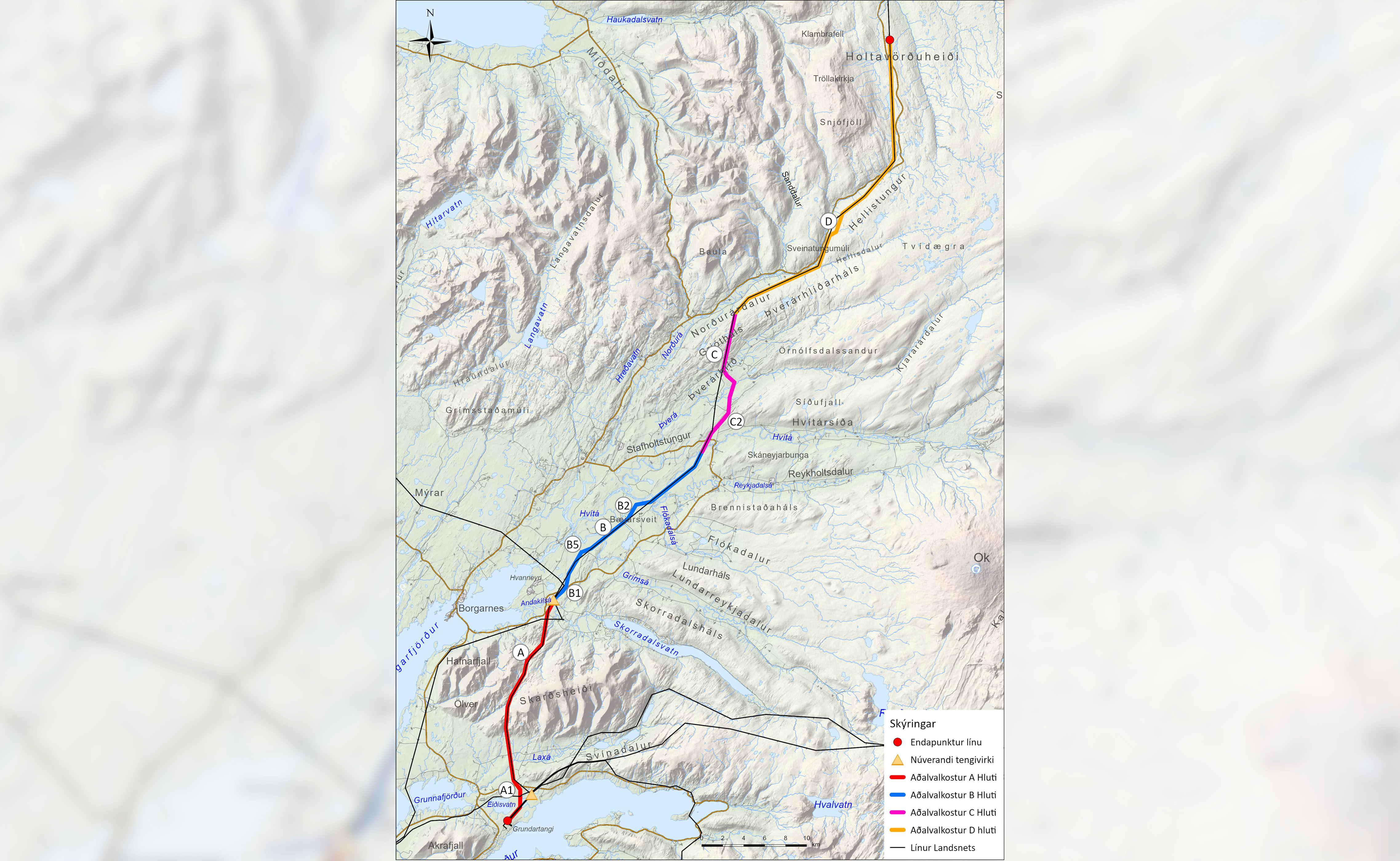 Landsnet vinnur að undirbúningi fyrir Holtvörðuheiðarlínu 1 (HH1) frá tengivirkinu á Klafastöðum að nýju tengivirki á Holtavörðuheiði. Lagning Holtavörðuheiðarlínu 1 er mikilvægur hlekkur í nýrri byggðalínu og verður línan, 220 kV loftlína, með tvöföldum leiðara. Flutningsgetan verður á milli 800 og 900 MW. (Sjá mynd af aðalvalkosti).