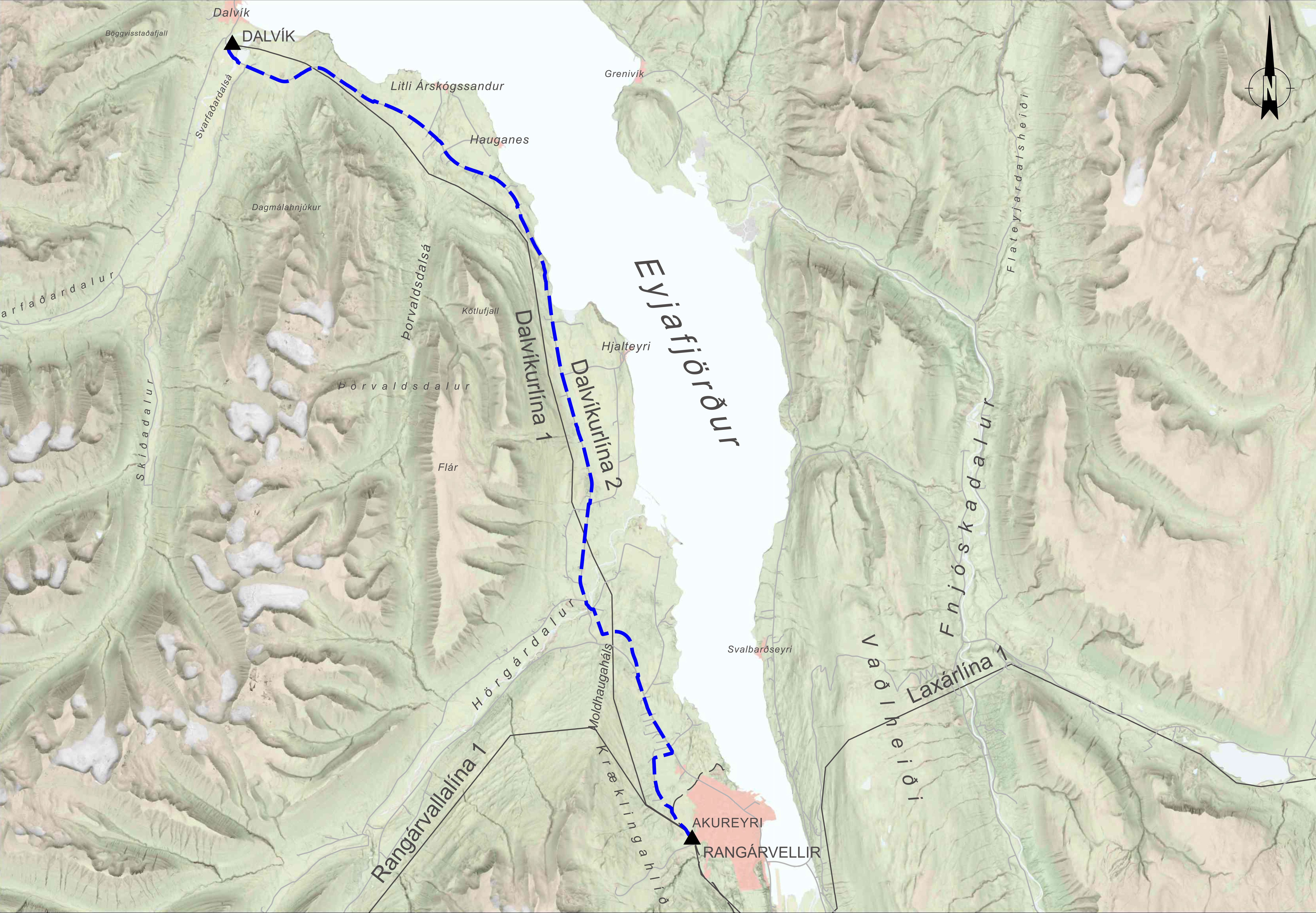 Verkefnið Akureyri – Dalvík felst í lagningu nýs 66 kV jarðstrengs, Dalvíkurlínu 2, um 42 km leið frá Akureyri til Dalvíkur. Núverandi tenging, Dalvíkurlína 1, verður áfram rekin í óbreyttri mynd.